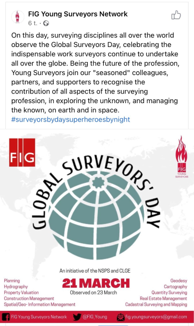 If you are celebrating this day or have organised activities for the promotion of the work of the surveyors in your country or region, we encourage you to submit and share your 2020 Global Surveyors Day activities at surveyorsday.com